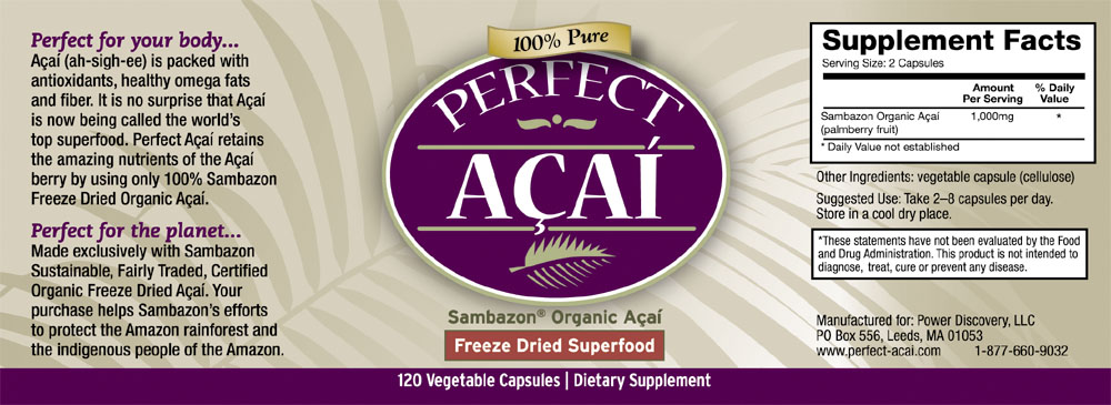 Natural Healthcare Store has done the research to bring you what we believe is one of the most pure acai products available on the market in the form and from the source  provides you with a final product containing all of the benefits of the fresh fruit!  We've also worked to make sure that we bring you a product that is appropriately priced. so, what makes Perfect Acai stand out to us! First, they use  100% pure acai powder with absolutely no fillers.  Second, they use only the high antioxidant berry skin and pulp in their product and do NOT include the seed as a filler. Third, Perfect Acai uses freeze dried Acai, a process widely recognized as the only way to preserve the full nutritional benefits of the berry.  Finally, Perfect Acai sources its product from Sambazon!  Sambazon not only takes great care to support the preservation of the rainforest and the people of the Amazon, but they also operate within the only freeze drying facility located right in the Amazon rainforest.  Why is this important?  These wonderful berries are so fragile and quickly perishable that you run the risk of loosing some of the antioxidant benefits simply in trucking the berries out of the Amazon to a more urban freeze drying facility!  With Sambazon's acai freeze dried powder this risk is eliminated!
