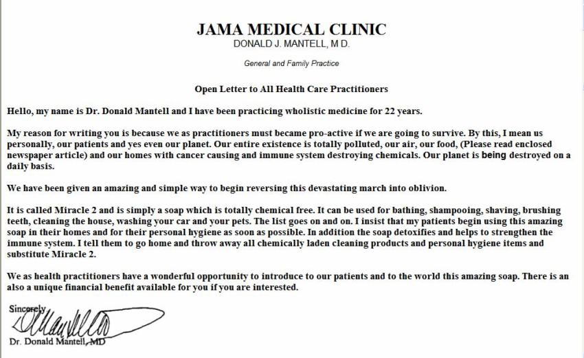 Miracle II by Tedco Inc Dr. Donald J. Mantell, MD is on the board of directors of the Cancer Control Society (www.cancercontrolsociety.com), is included in the Who’s Who of Holistic Medicine, and is the National Spokesman for Miracle II. Dr. Mantell has also used Miracle II with his patients with cancer.