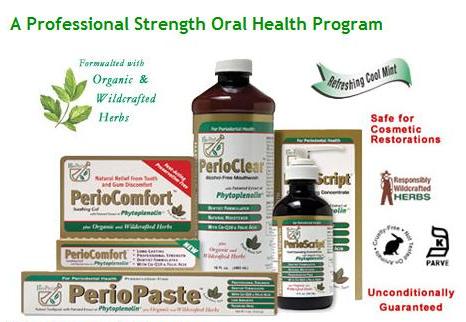 PerioPaste™ promotes healthy teeth and gums by offering more than other "natural" toothpastes. It blends Lysine with key herbs, essential oils and the patented extract of Phytoplenolin®. Used regularly, this vegetarian, low abrasive toothpaste naturally whitens teeth and leaves breath fresh and clean for hours. PerioPaste™ is fluoride-free, preservative-free and sodium-lauryl-sulfate-free. PerioPaste™ leaves teeth feeling clean and smooth. Your whole mouth is energized with a cool, sparkling sensation that will last long after you finish brushing. Main Ingredients: Lysine, folic acid, CoQ10, with key herbs, essential oils and patented extract of Phytoplenolin® This low abrasive formula is naturally sweetened with Xylitol to fight tooth decay (Xylitol sourced from Birch trees). Full List of Ingredients: Phytoplenolin® (Centipeda Cunninghamii Extract), Bio-Chelated® Extracts of Echniacea Purpurea Tops (Echinacea Purpurea), Calendula Flower (Calendula Officinalis), Olive Leaf (Olea Europaea), Black Walnut Green Hulls (Juglans Nigra), Gotu Kola Herb (Centella Asiatica), Chamomile Flower (Chamomilla Recutita (Matricaria)), Green Tea Leaf (Camellia Sinensis), Prickly Ash Bark (Zanthoxylum Americanum) and Grapefruit Seed (Citrus Grandis), Essential Oils of Peppermint (Mentha Piperita), Oregano (Origanum Vulgare), Clove (Eugenia Caryophyllus), Thyme (Thymus Vulgaris), Lavender (Lavandula Angustifolia), Cinnamon (Cinnamomum Zeylanicum) and Eucalyptus (Eucalyptus Globulus), Bio-SaponinTM (Saponins), Folic Acid, Coenzyme Q10 (Ubiquinone), Aloe Vera PhytogelTM (Aloe Barbadensis), Sodium Bicarbonate, Colloidal Silica, Lysine, Xylitol, Xantham Gum and Chlorophyll. PerioClear™ Alcohol-Free Mouthwash 16 oz PerioClear™ is a powerful alcohol-free oral rinse and mouthwash that moistens tissue, freshens breath for hours and encourages periodontal health. This advanced mouthwash contains organic and responsibly wildcreafted herbs including Echinacea, Green Tea and Olive Leaf, ingredients well-known for promoting healthy gums. This advanced mouthwash contains the same organic and responsibly wildcrafterd herbs as PerioScript™ Main Ingredients: Echinacea, Green Tea, Olive Leaf, Peppermint Oil, Clove Oil, Oregano Oil Thyme Oil, Co-Q10, Folic Acid and the patented extract Phytoplenolin®. Full List of Ingredients: Phytoplenolin® (Centipeda Cunninghamii Extract), Bio-Chelated® Extracts of Calendula Flower, Chamomile Flower, Echinacea Purpurea Tops, Gotu Kola Herb, Prickly Ash Bark, Olive Leaf, Grapefruit Seed, Black Walnut Green Hulls, Green Tea Leaf, Goldenseal Rhizome, Essential Oils of Peppermint, Oregano, Rosemary, Lavender, Cinnamon, Clove, Lemon Balm, Eucalyptus, Thyme, Bio-SaponinTM (Quillaia, Yucca Extract, Sarsparilla Root Extract, Wild Yam Root Extract), Xylitol, Folic Acid, Aloe PhytogelTM (Aloe Barbadensis), Coenzyme Q10, Chlorophyll. PerioComfort™ Soothing Gel ½ oz Tube PerioComfort™ is a soothing gel which can be gently massaged into irritated gum tissue providing fast-acting relief from tooth and gum discomfort for both adults and children. PerioComfort™ features a proprietary blend of organic and responsibly wildcrafted herbs combined with essential oils and the patented extract of Phytoplenolin®. These ingredients work together to calm tooth and gum distress. The cool mint flavor will leave breath refreshed. Preservative-free vegetarian gel based on the PerioScript™ formula provides fast-acting relief for tooth and gum discomfort while restoring and strengthening distressed tissue. Refreshes your mouth with a minty, clean taste. May also be used as an abrasive free toothpaste for sensitive teeth. Ingredients: Phytoplenolin® (Centipeda Cunninghamii Extract), Bio-Chelated® Extracts of Echniacea Purpurea Tops (Echinacea Purpurea), Calendula Flower (Calendula Officinalis), Olive Leaf (Olea Europaea), Black Walnut Green Hulls (Juglans Nigra), Gotu Kola Herb (Centella Asiatica), Chamomile Flower (Chamomilla Recutita (Matricaria)), Green Tea Leaf (Camellia Sinensis), Prickly Ash Bark (Zanthoxylum Americanum) and Grapefruit Seed (Citrus Grandis), Essential Oils of Peppermint (Mentha Piperita), Oregano (Origanum Vulgare), Clove (Eugenia Caryophyllus), Thyme (Thymus Vulgaris), Lavender (Lavandula Angustifolia), Cinnamon (Cinnamomum Zeylanicum) and Eucalyptus (Eucalyptus Globulus), Bio-SaponinTM (Saponins), Folic Acid, Coenzyme Q10 (Ubiquinone), Aloe Vera PhytogelTM (Aloe Barbadensis), Sodium Bicarbonate, Hydroxyethylcellulose, Xantham Gum and Chlorophyll. Safety for Children: Please note that these products are safe for children as they contain only herbs, vitamins, and essential oils and DO NOT contain any additives, artificial sweeteners, colors, dyes, alcohol, synthetic solvents, or sodium-lauryl-sulfate. Unlike other toothpastes, these products do not have a "poison control warning" on the label as they are safe if swallowed. PerioComfort® has been used with great success on teething babies. Sensitive Teeth: These products are recommended by the manufacturer for individuals with sensitive teeth previously using formulas labeled as for sensitive teeth. The manufacturer worked to create a toothpaste that would thoroughly clean and brighten teeth without irritating the teeth which is generally the cause of sensitivity. The first and one of the most irritating ingredients in toothpaste, skincare and more, which is NOT included in any of these formulas is sodium lauryl sulfate. Bio-Pro® uses natural plant saponins, plant soaps, which are extract in its FDA registered pharmaceutically licensed USA facility. Many other companies use chemicals that are similar to sodium lauryl sulfate, but are using a different name because of a very slight change in the formula and the wide controversy surrounding this ingredient. Also, for its cleaning "abrasive" Bio-Pro® uses the highest grade of calcium carbonate available and DOES NOT use titanium oxide which has unknown medical implicatio